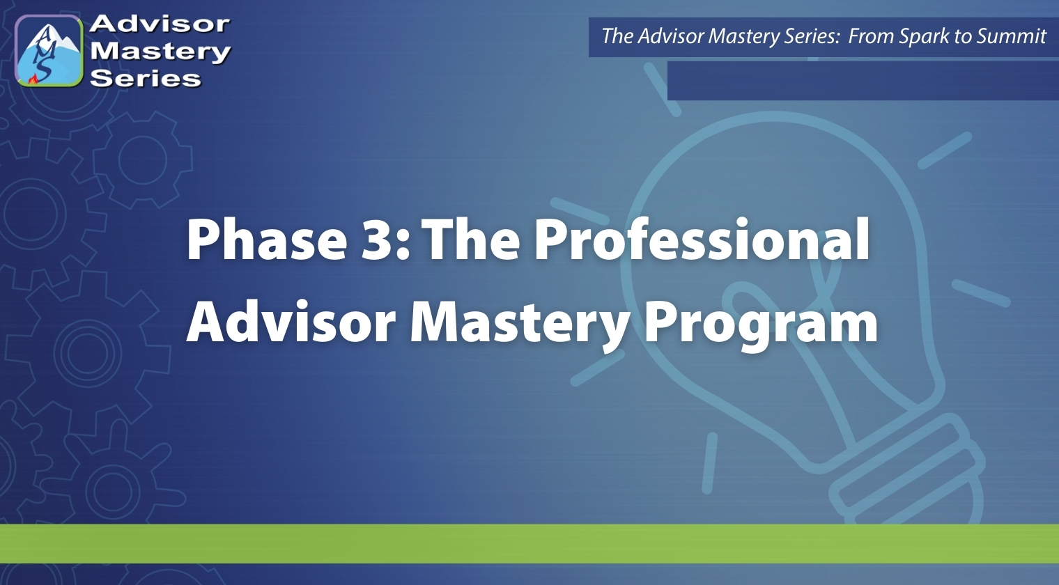 The Advisor Mastery Series is a comprehensive, 3-phase program designed to elevate Canadian financial advisors from foundational competence to professional mastery. Work at your own pace to build your practice and reach your professional goals. Begin your journey from spark to career summit now!